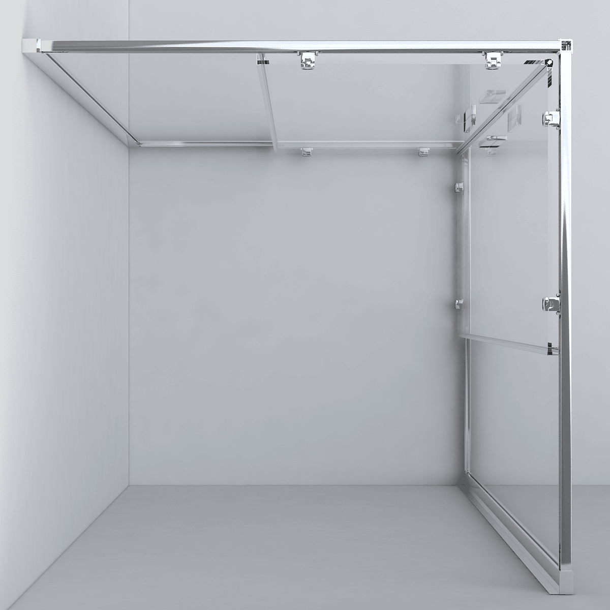 Конструкция душевого уголка включает отщелкивающиеся нижние ролики и верхние ролики из нержавеющей стали, что обеспечивает плавное и бесшумное открытие и закрытие дверей. Материал, из которого изготовлен уголок — сталь, отличается прочностью и устойчивостью к коррозии, что делает его идеальным выбором для влажной среды ванной комнаты.
