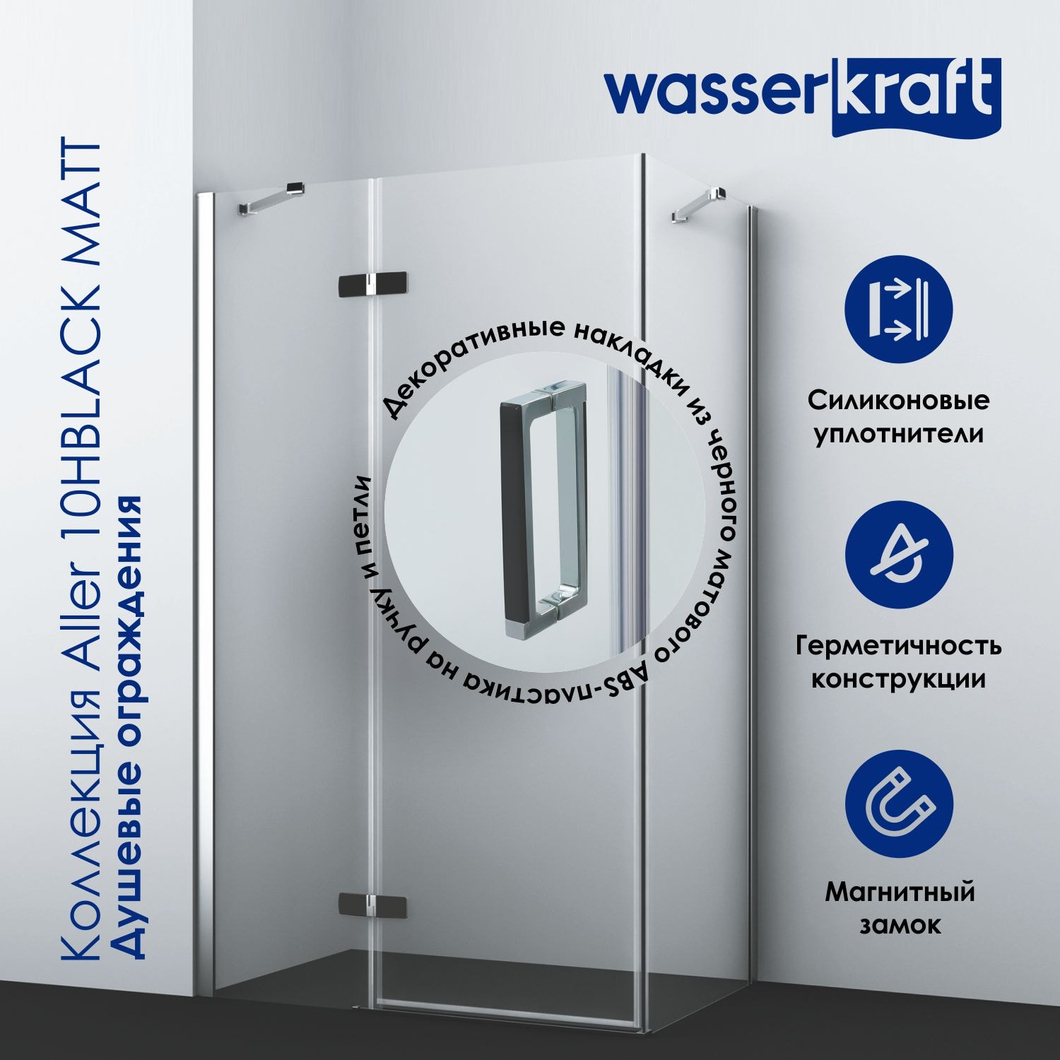 Душевой уголок WasserKRAFT Aller 10H07RBLACK MATT — это не только функциональный элемент вашей ванной комнаты, но и стильный акцент, который подчеркнет ваш вкус. Заказывайте его на сайте pletora.ru и наслаждайтесь качеством немецкого производства!