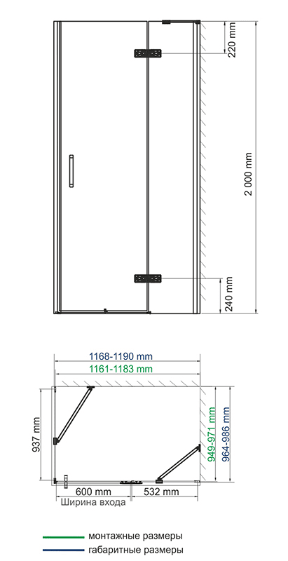 - Номинальный размер: 1200x1000x2000 мм