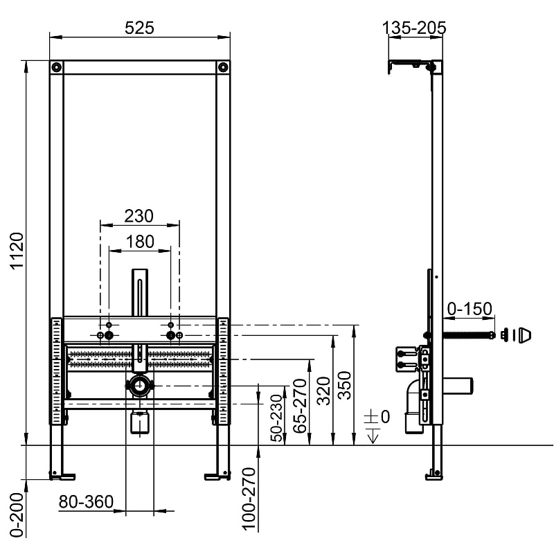 Серия ViConnect от Villeroy & Boch предоставляет разнообразные варианты инсталляций, подходящие как для просторных ванных комнат, так и для компактных гостевых туалетов. Высота 1120 мм, ширина 525 мм и глубина 135 мм делают эту инсталляцию универсальной и удобной в использовании.