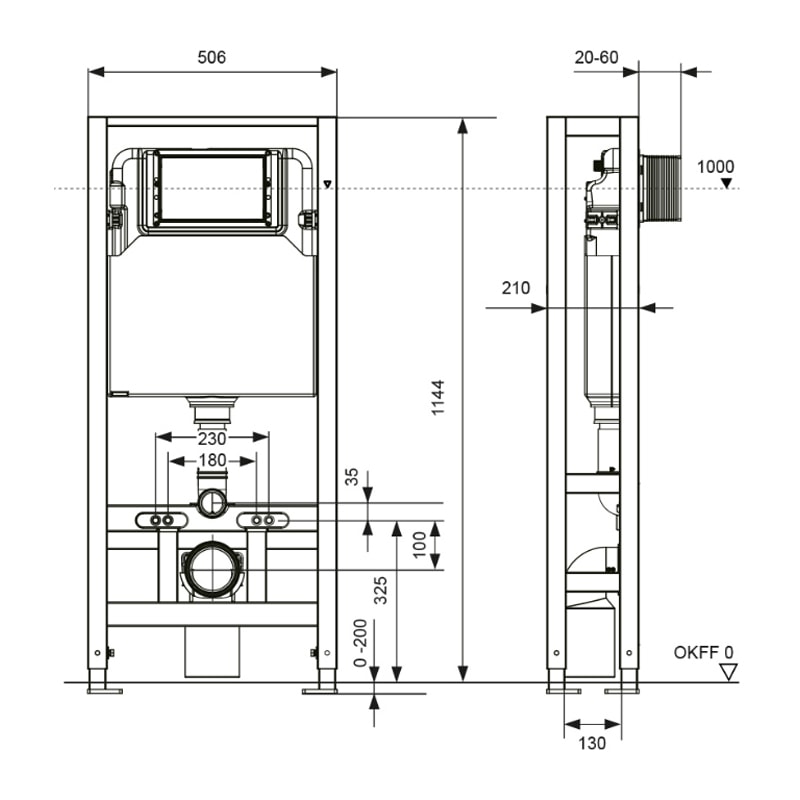 Инсталляция подходит для отдельностоящего монтажа, что делает ее идеальным выбором, когда нет несущей стены или она недостаточно прочная. Модуль включает в себя несущую монтажную раму с порошковым покрытием, что обеспечивает дополнительную прочность и надежность.
