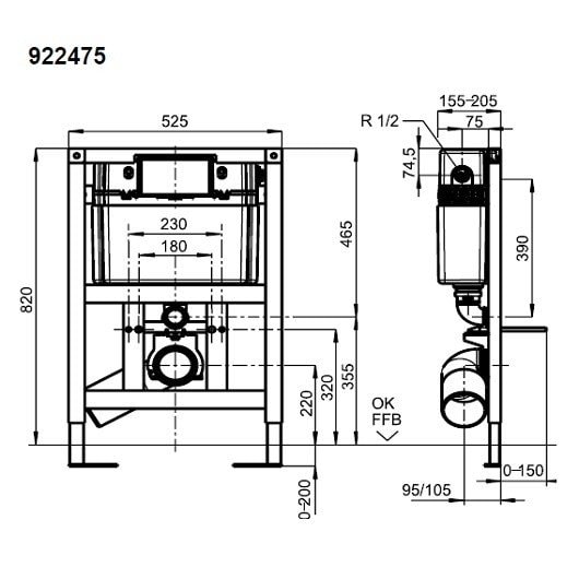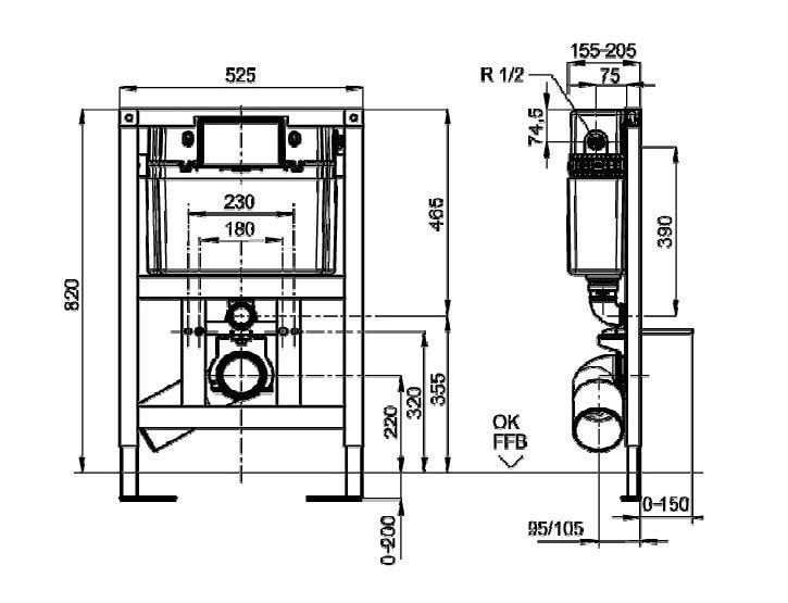 С габаритами 820 мм в высоту, 520 мм в ширину и 200 мм в глубину, инсталляция подходит для монтажа в капитальную стену и каркасные перегородки легкой конструкции. Она обеспечивает удобное управление спуском воды спереди или сверху, что делает ее использование максимально комфортным.