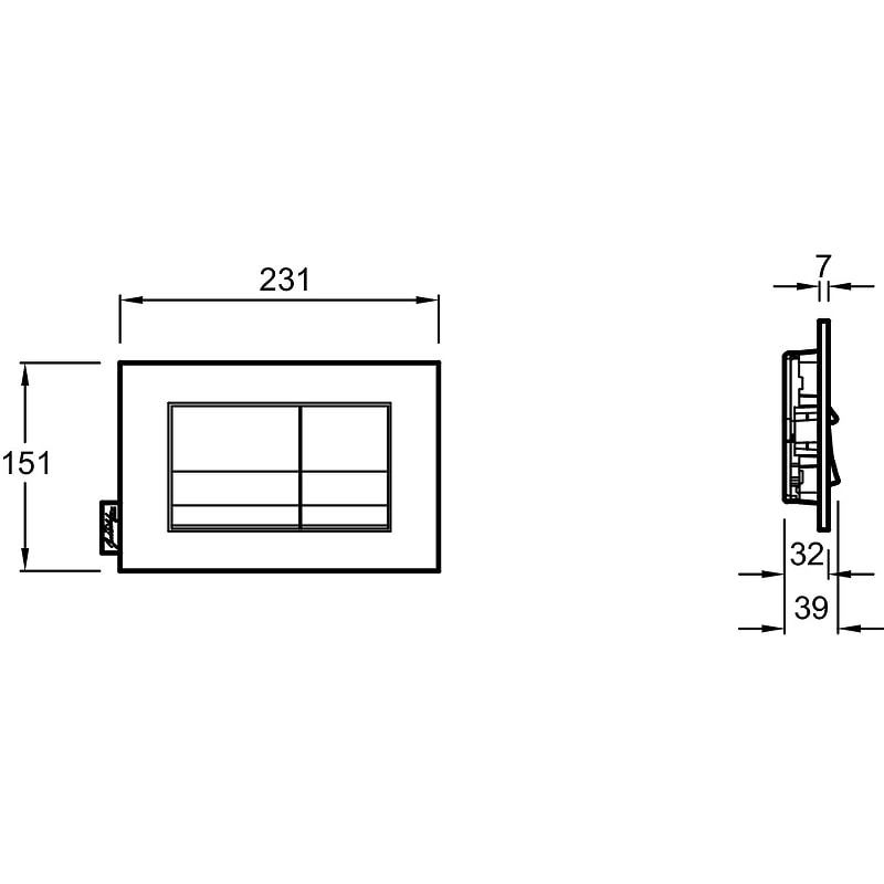 Габариты клавиши составляют 23,1 см в ширину, 15,1 см в высоту и 3,9 см в глубину, что делает её универсальным решением для большинства стандартных унитазов. Благодаря продуманной форме, клавиша удобно ложится в руку, обеспечивая комфортное использование.