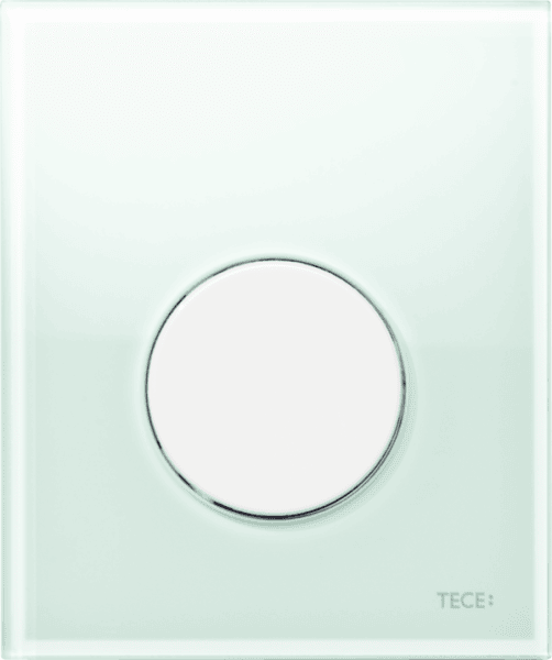 Клавиша смыва Tece Loop выполнена из прочного стекла зеленого цвета, что придаёт ей современный и изысканный вид. Белая клавиша добавляет контраст и делает устройство более заметным. Эта панель смыва предназначена для установки в систему стального профиля TECE, что обеспечивает простоту монтажа и надежность в эксплуатации.
