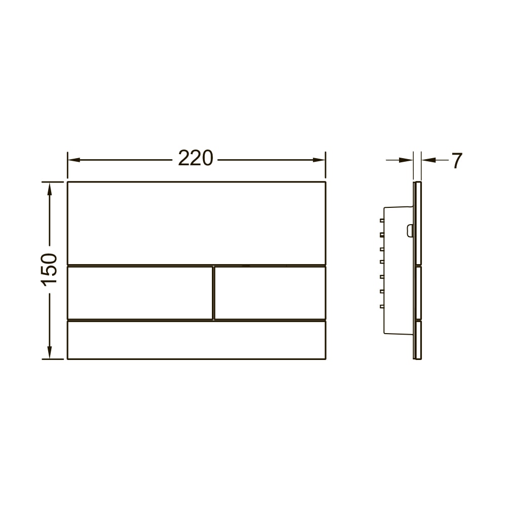 Клавиша смыва TECEsquare II выполнена из прочного стекла и имеет матовую поверхность, что придает ей особую изысканность. Размеры панели составляют 220 мм в ширину и 150 мм в высоту, что позволяет легко интегрировать ее в различные системы инсталляции. Благодаря сверхплоскому дизайну, клавиша выглядит стильно и современно, а также легко очищается от загрязнений.