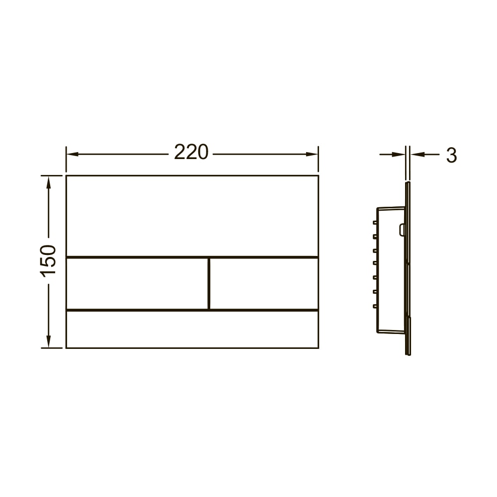 Клавиша смыва Tece TECEsquare II предназначена для фронтальной или верхней установки на смывные бачки. Сверхплоская металлическая панель смыва с двумя клавишами кулисного типа, установленными на пружинах, обеспечивает легкость и удобство в использовании. Размеры клавиши составляют 220 мм в ширину и 150 мм в высоту, что делает её компактной и стильной.