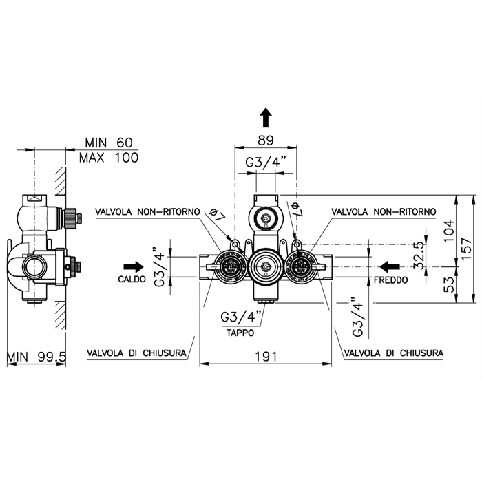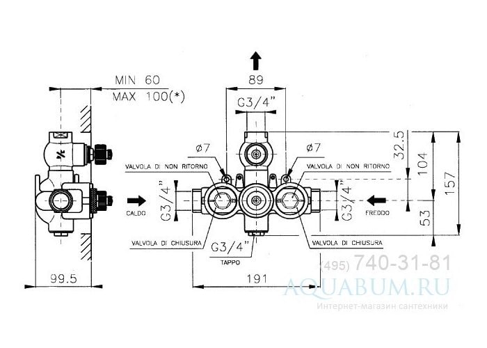 Внутренний блок смесителя Nicolazzi Termostatico предназначен для встраивания в стену, что позволяет создать аккуратный и стильный вид в ванной комнате. Данная модель не включает в себя части для внешнего монтажа, что упрощает процесс установки и обеспечивает более чистый и минималистичный дизайн.