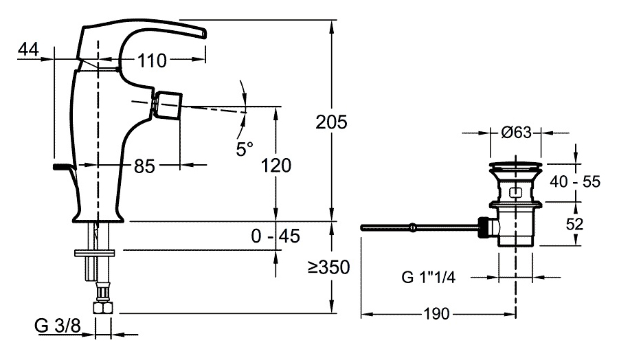 Смеситель для биде Jacob Delafon SYMBOL E73680-CP