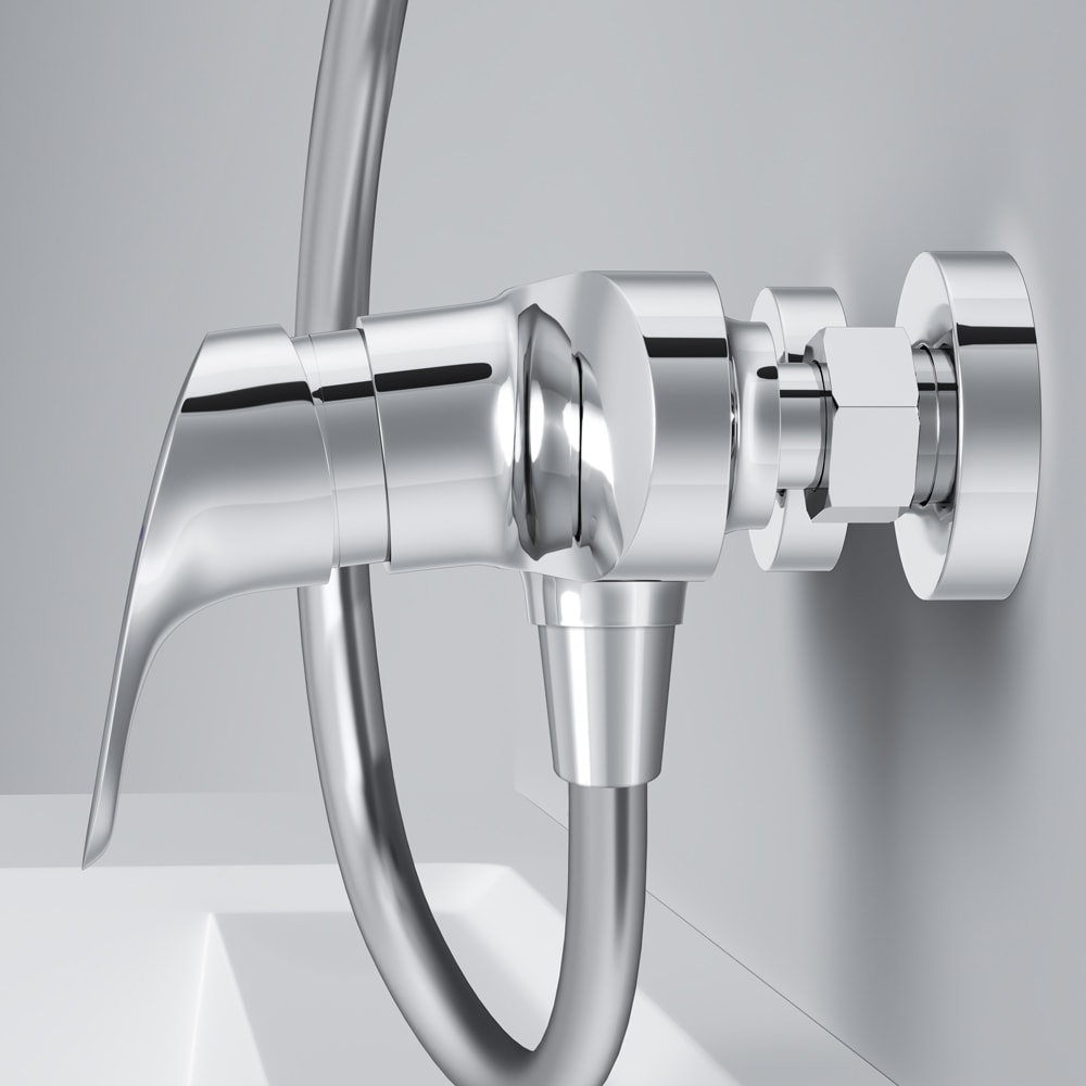 Смеситель выполнен из прочной латуни и имеет хромированный цвет, который добавляет элегантности и современности. Его короткий излив и монтаж на стену делают его удобным в использовании и простым в установке. Смеситель предназначен для душа и имеет два отверстия для монтажа, что обеспечивает надежное крепление и долговечность.