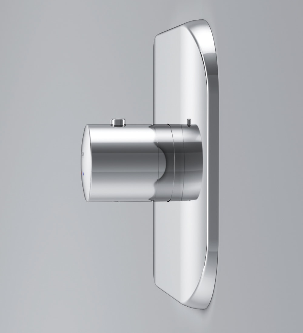 Управление смесителем осуществляется с помощью термостатического картриджа с высокочувствительным термоэлементом Vernet, который мгновенно реагирует на изменения температуры и давления в водопроводной сети. Это гарантирует защиту от ожогов даже в случае внезапного отключения холодной воды.