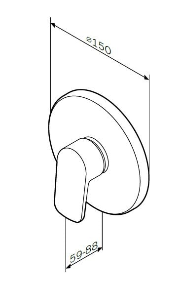 Смеситель выполнен из прочной латуни и имеет хромированное покрытие, что не только придает ему элегантный вид, но и защищает от коррозии. Его размеры: высота — 150 мм, длина — 59 мм, ширина — 150 мм, что делает его компактным и удобным для установки в любом душевом пространстве.