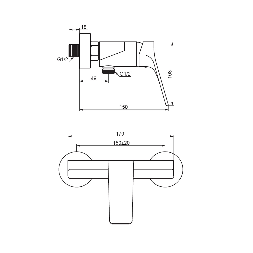 Смеситель выполнен из качественной латуни и имеет хромированное покрытие, что обеспечивает не только привлекательный внешний вид, но и долговечность. Высота смесителя составляет 120 мм, ширина — 210 мм, а глубина — 150 мм, что позволяет легко интегрировать его в пространство вашей ванной комнаты. Монтаж осуществляется на стену с использованием двух отверстий, а стандарт подводки — 1/2".