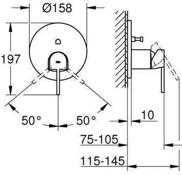 Смеситель предназначен для настенного монтажа и подходит для стандартного подводки 1/2". Его размеры: высота 197 мм, ширина 158 мм и глубина 115 мм, что делает его компактным и удобным для установки в любом интерьере. Однорычажное управление позволяет легко регулировать температуру и напор воды, а автоматический переключатель на 2 положения обеспечивает комфортное использование.