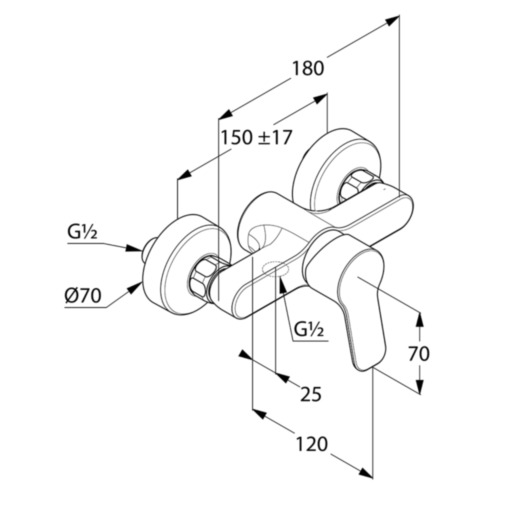 Смеситель выполнен из прочной латуни и представлен в элегантном хромированном цвете, который добавляет блеска и стиля в интерьер. Его размеры: высота — 105 мм, длина — 155 мм, ширина — 220 мм, что позволяет легко интегрировать его в любую ванную комнату. Монтаж осуществляется на стену с использованием двух отверстий, что обеспечивает надежность и долговечность.
