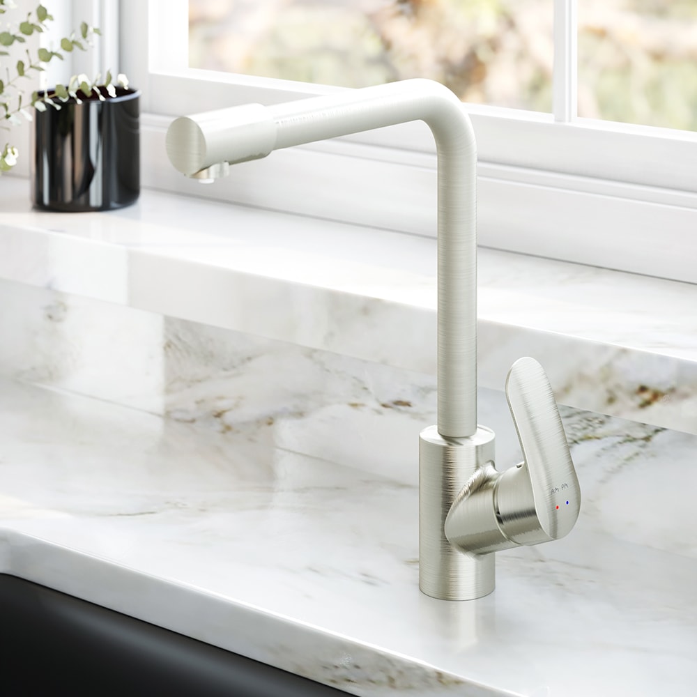 Смеситель AM.PM Like F8005711 оснащен инновационным встроенным каналом для питьевой воды. Благодаря технологии Fresh Boost, при вращении ручки на 90 градусов вы сможете наслаждаться чистой питьевой водой, а для получения обычной воды достаточно управлять смесителем привычным способом.