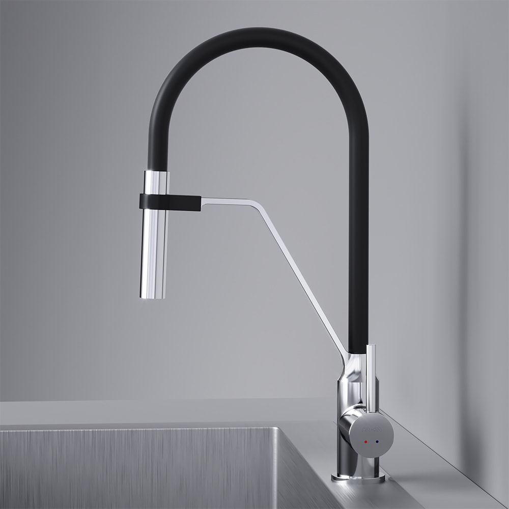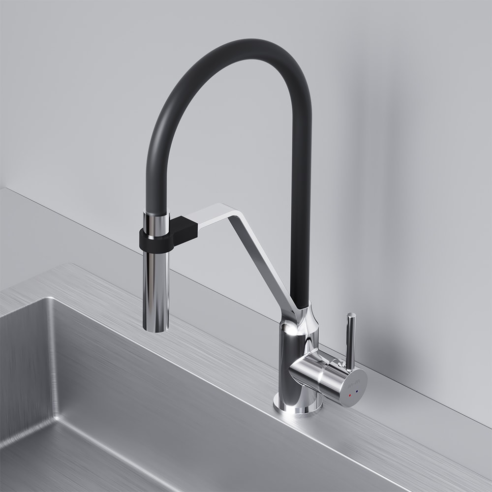 Одной из ключевых особенностей данного смесителя является гибкий излив, который значительно расширяет зону использования. Он изготовлен из термостойкого силикона, который абсолютно безопасен при контакте с водой, так как не содержит токсичных компонентов. Гладкая поверхность излива устойчива к загрязнениям, что обеспечивает легкий уход и долговечность. Кроме того, излив износостойкий и устойчив к перегибам, что делает его идеальным для активного использования.