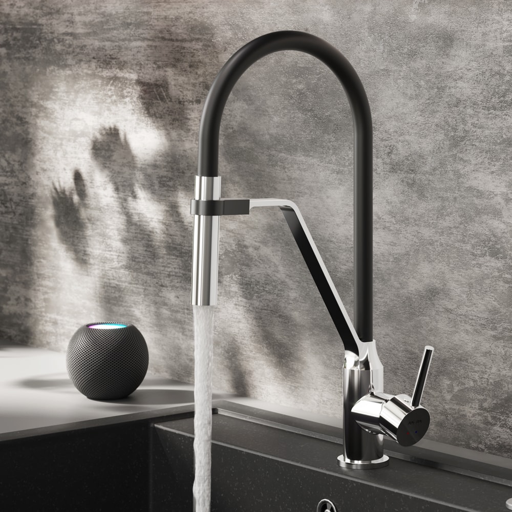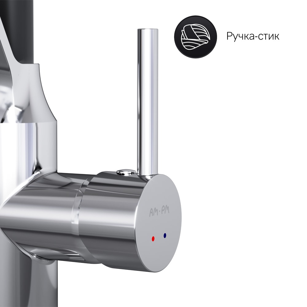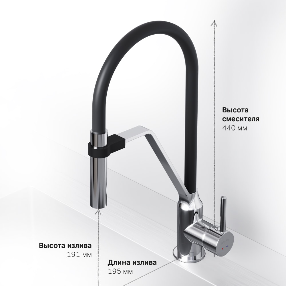 Управление смесителем осуществляется с помощью рычажной ручки, которая сконструирована под руку, не пачкается и легко управляется. Это позволяет вам точно настраивать поток воды, что делает использование смесителя еще более комфортным.