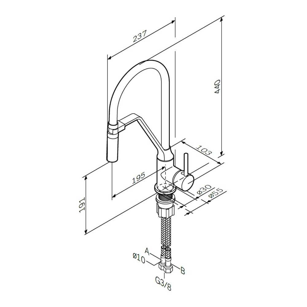 Лейка смесителя выполнена из нержавеющей стали оптимального размера, что обеспечивает удобный хват и легкость в использовании. Держатель излива изготовлен из ударопрочного ABS-пластика, который отлично переносит воздействие влаги и моющих средств, что гарантирует долговечность и надежность.