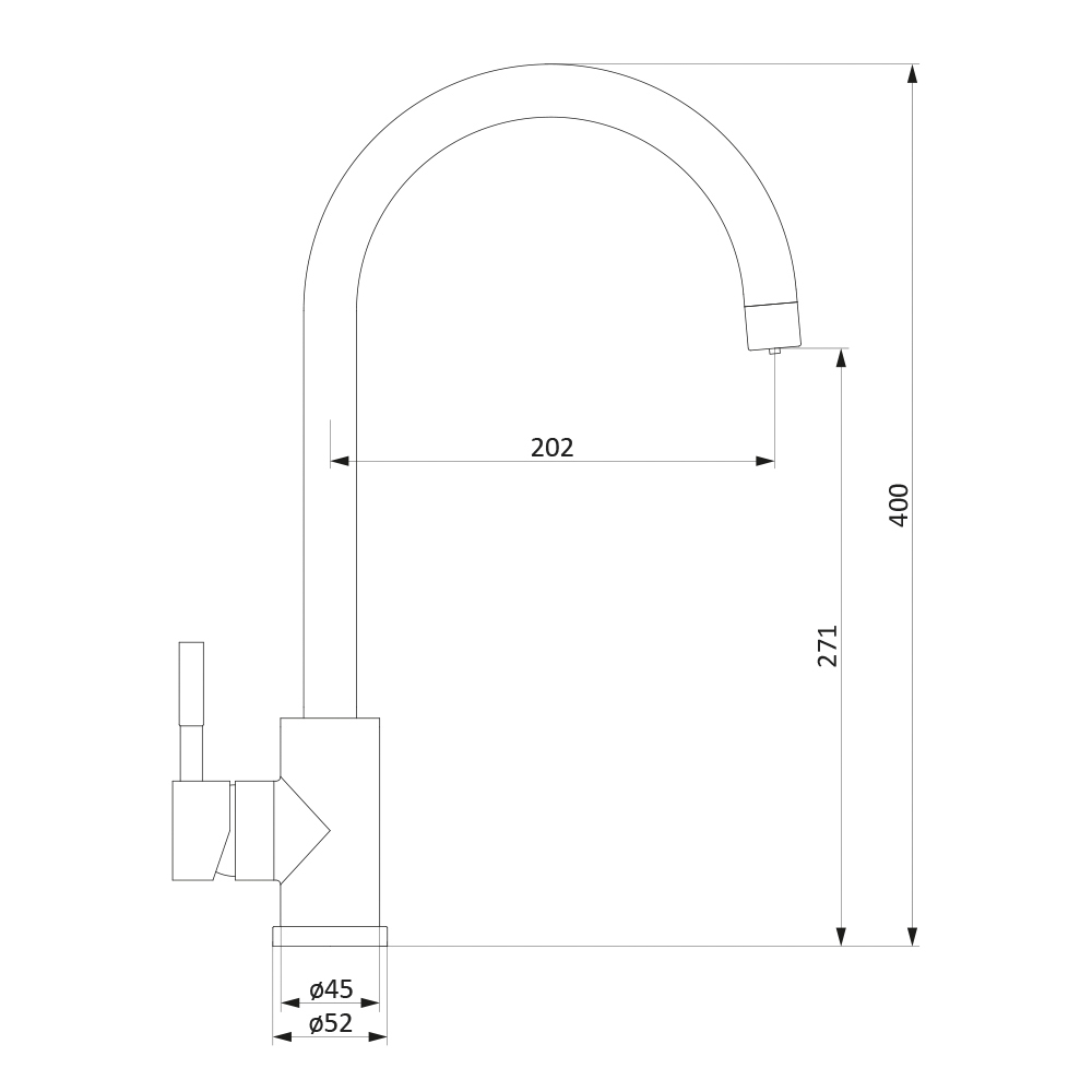 Смеситель предназначен для монтажа на мойку и подходит для установки в одно отверстие. Его размеры (высота 400 мм, ширина 52 мм, глубина 209 мм) делают его универсальным решением для большинства кухонных раковин. Цвет никель придаёт смесителю современный и элегантный вид, который отлично впишется в любой интерьер.