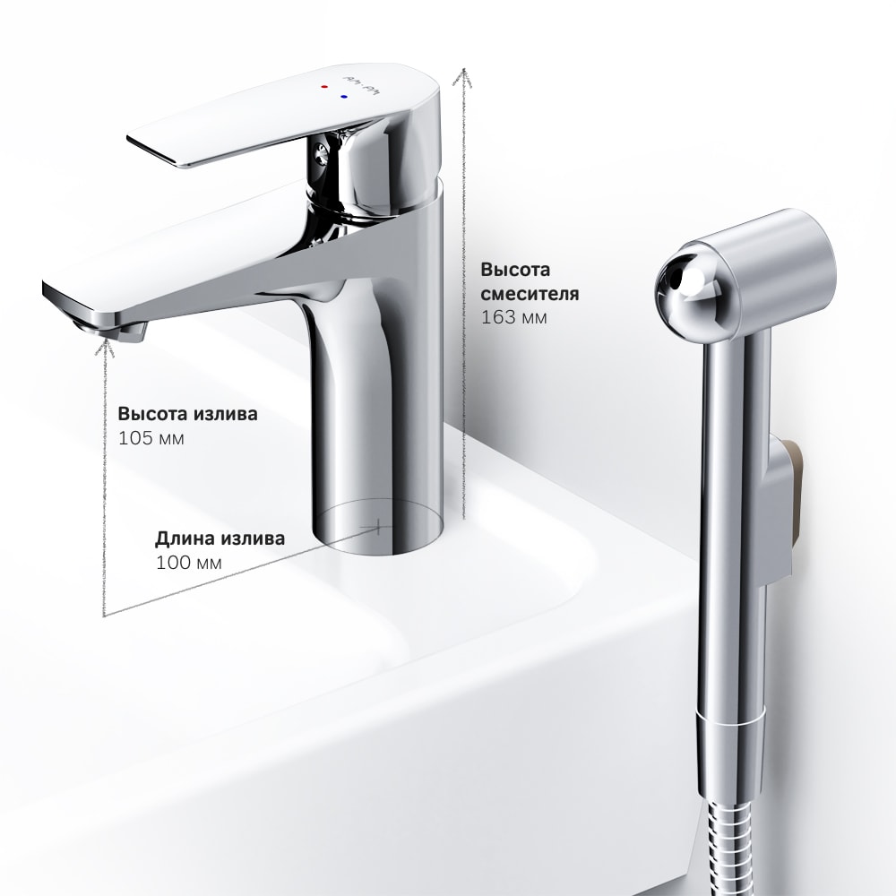Смеситель AM.PM Gem F90A03000 выполнен из качественной латуни, что гарантирует долговечность и надежность в эксплуатации. Его размеры: высота 167 мм, длина 138 мм и ширина 45 мм, что делает его компактным и удобным для установки на раковину. Уникальный дизайн, разработанный австрийскими специалистами из Product Identity AM.PM - GP designpartners, выделяет этот смеситель среди стандартных моделей.