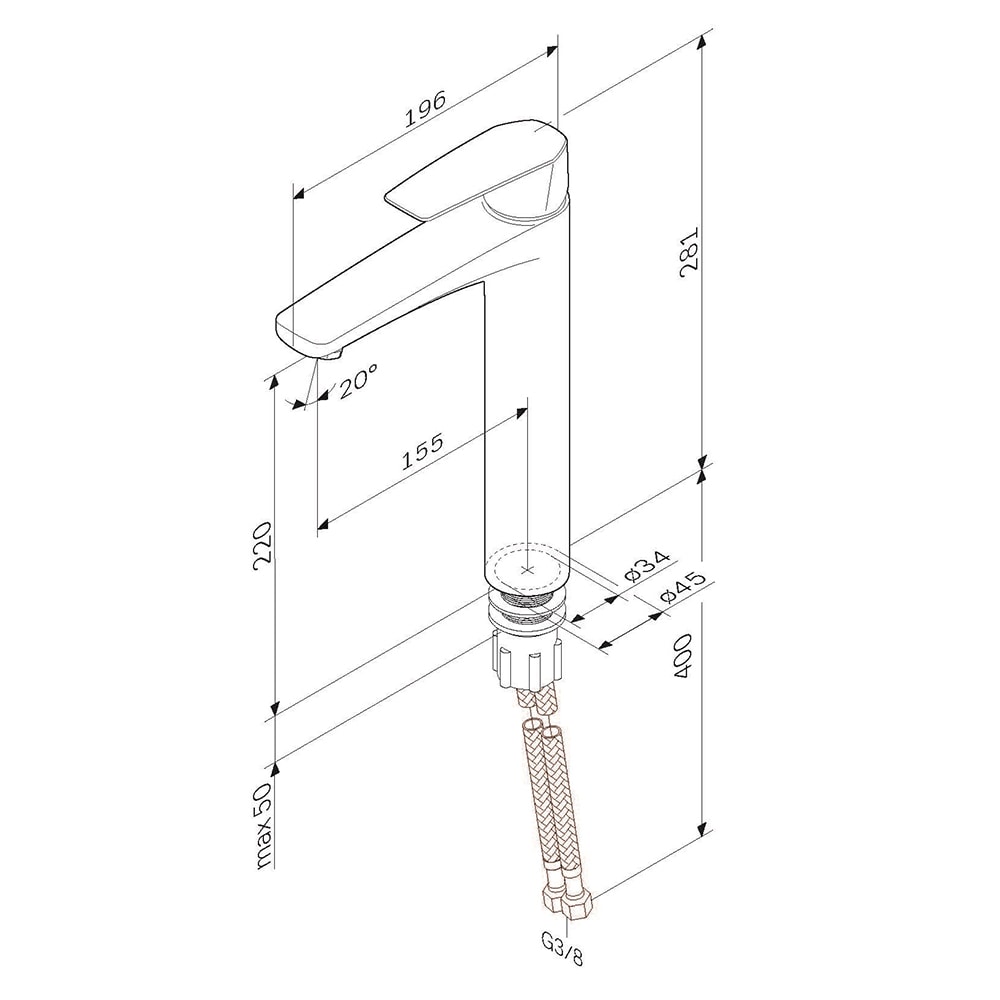 Смеситель AM.PM Gem выполнен из экологически чистой латуни с пониженным содержанием свинца, что гарантирует безопасность использования. Высота смесителя составляет 281 мм, длина - 196 мм, а ширина - 45 мм, что делает его удобным для установки на раковину с одним отверстием. Тип монтажа - внешний, что упрощает процесс установки и эксплуатации.