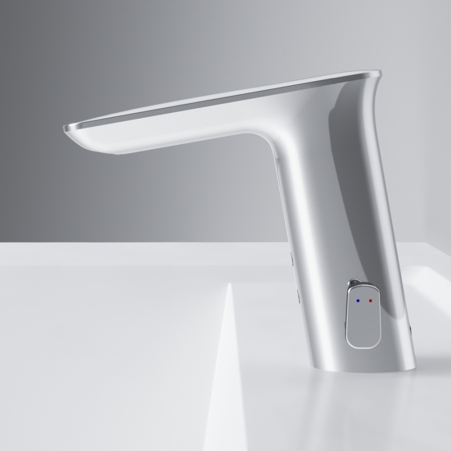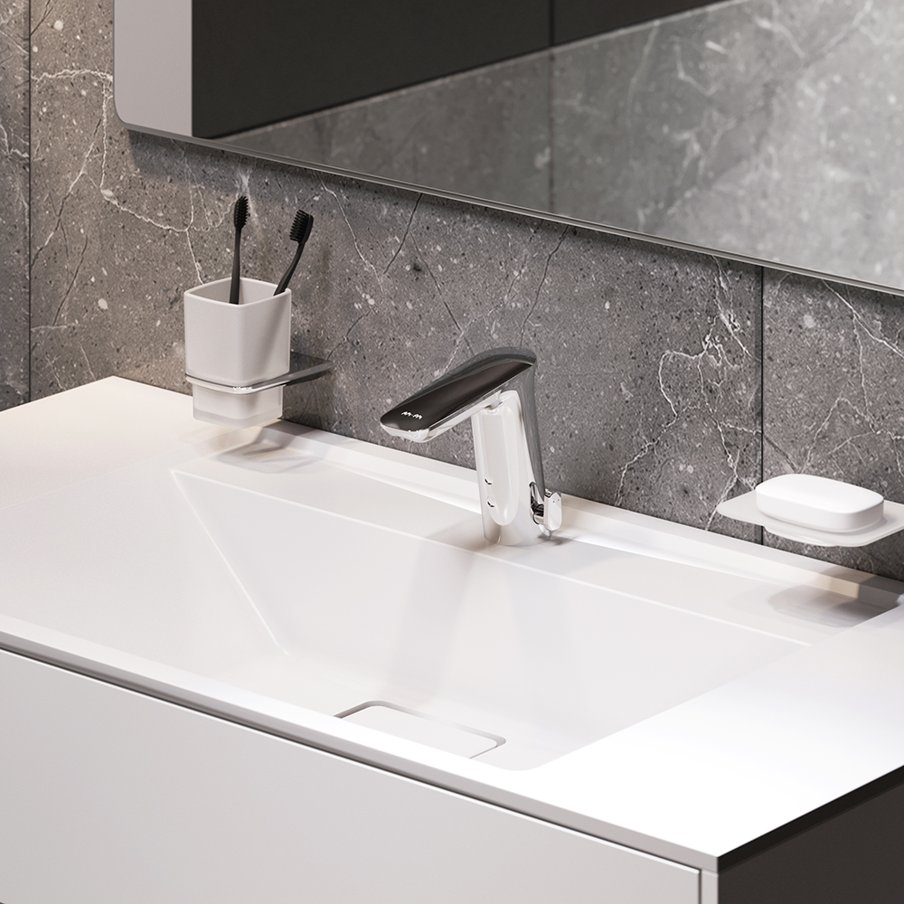 Смеситель AM.PM Inspire V2.0 изготовлен из высококачественной латуни, что гарантирует его долговечность и надежность. Высота смесителя составляет 140 мм, длина — 167 мм, а ширина — 50 мм, что делает его компактным и удобным для установки на раковину. Уникальный короткий излив обеспечивает оптимальный поток воды, а сенсорное управление позволяет легко настраивать температуру без лишних прикосновений, что особенно важно для поддержания гигиеничности.