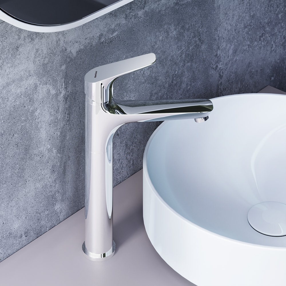 Одной из ключевых особенностей данного смесителя является высокий излив, который обеспечивает обширную зону движения, позволяя легко управлять температурой и мощностью потока воды. Управление осуществляется с помощью рычажного механизма, а керамический картридж Light Flow гарантирует плавное и точное регулирование.