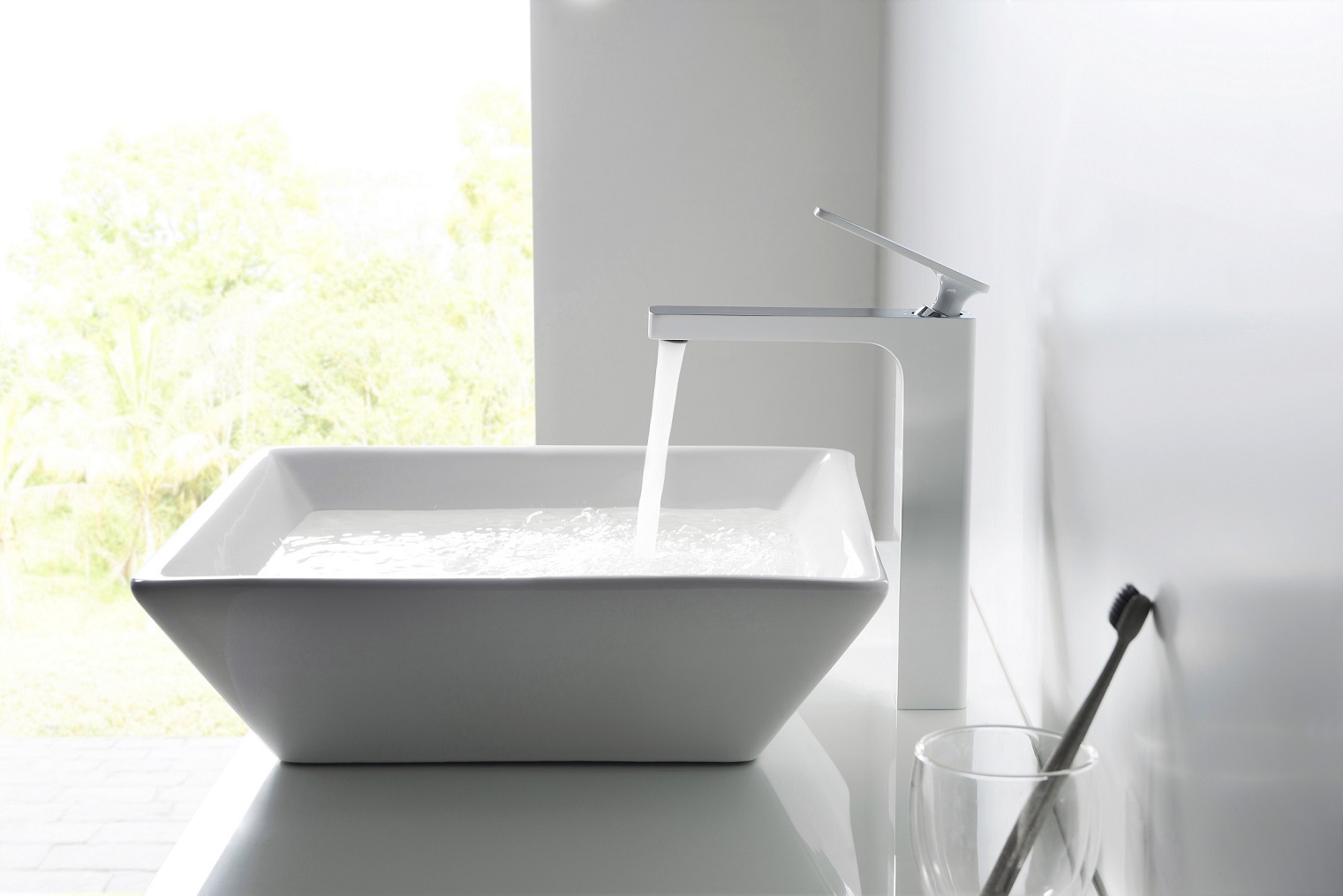 Управление смесителем осуществляется с помощью одного рычага, что позволяет легко регулировать температуру и напор воды. Статичная конструкция смесителя исключает необходимость в ремонте, так как отсутствуют подвижные механизмы, что делает его эксплуатацию максимально удобной.