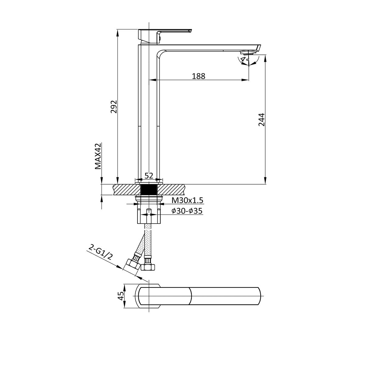 Смеситель Vincea Next выполнен из прочной латуни, что обеспечивает долговечность и стойкость к механическим повреждениям. Его защитное покрытие гарантирует, что смеситель будет сохранять идеальный внешний вид на протяжении всего срока службы. Модель предназначена для монтажа на столешницу и требует всего одно отверстие, что делает установку простой и быстрой.