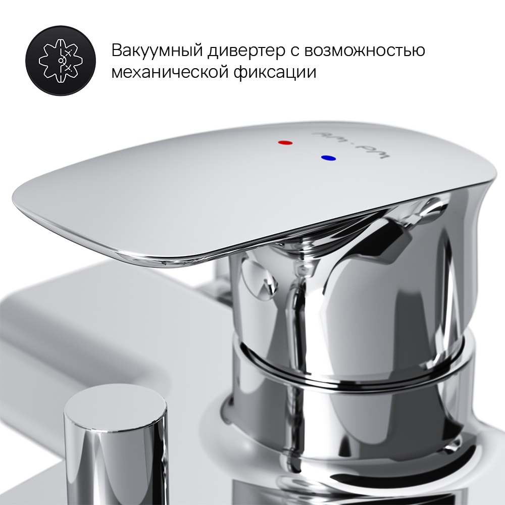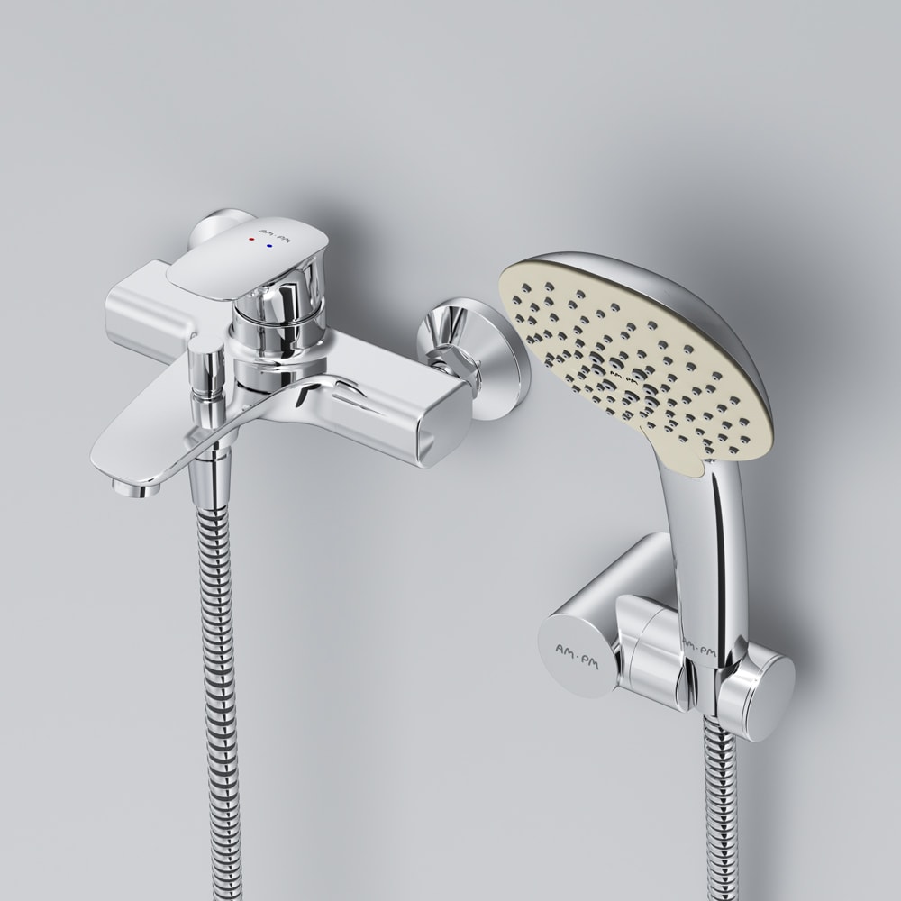 Одной из ключевых особенностей смесителя Am.Pm Spirit V2.1 является его рычажное управление, которое обеспечивает легкость в использовании. Переключение между режимами «ванна-душ» стало еще проще благодаря инновационному пневматическому переключению, которое работает безукоризненно даже при низком напоре воды.