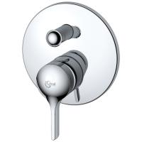Смеситель имеет автоматическое переключение между душем и ванной, что делает его использование ещё более удобным. Металлическая накладка и рукоятка с индикаторами горячей и холодной воды добавляют дополнительный комфорт в процессе эксплуатации.