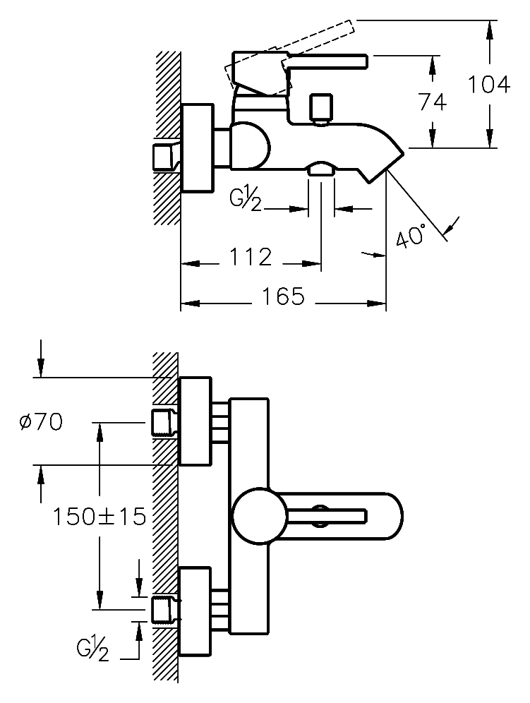 Смеситель имеет хромированное покрытие, что обеспечивает не только привлекательный внешний вид, но и защиту от коррозии. Высота смесителя составляет 139 мм, длина — 165 мм, а ширина — 220 мм, что делает его компактным и удобным для установки на стену. Установка производится на 2 отверстия с использованием стандартного подводки 1/2".