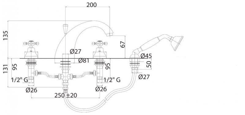 - Тип монтажа: встроенный на борт ванны