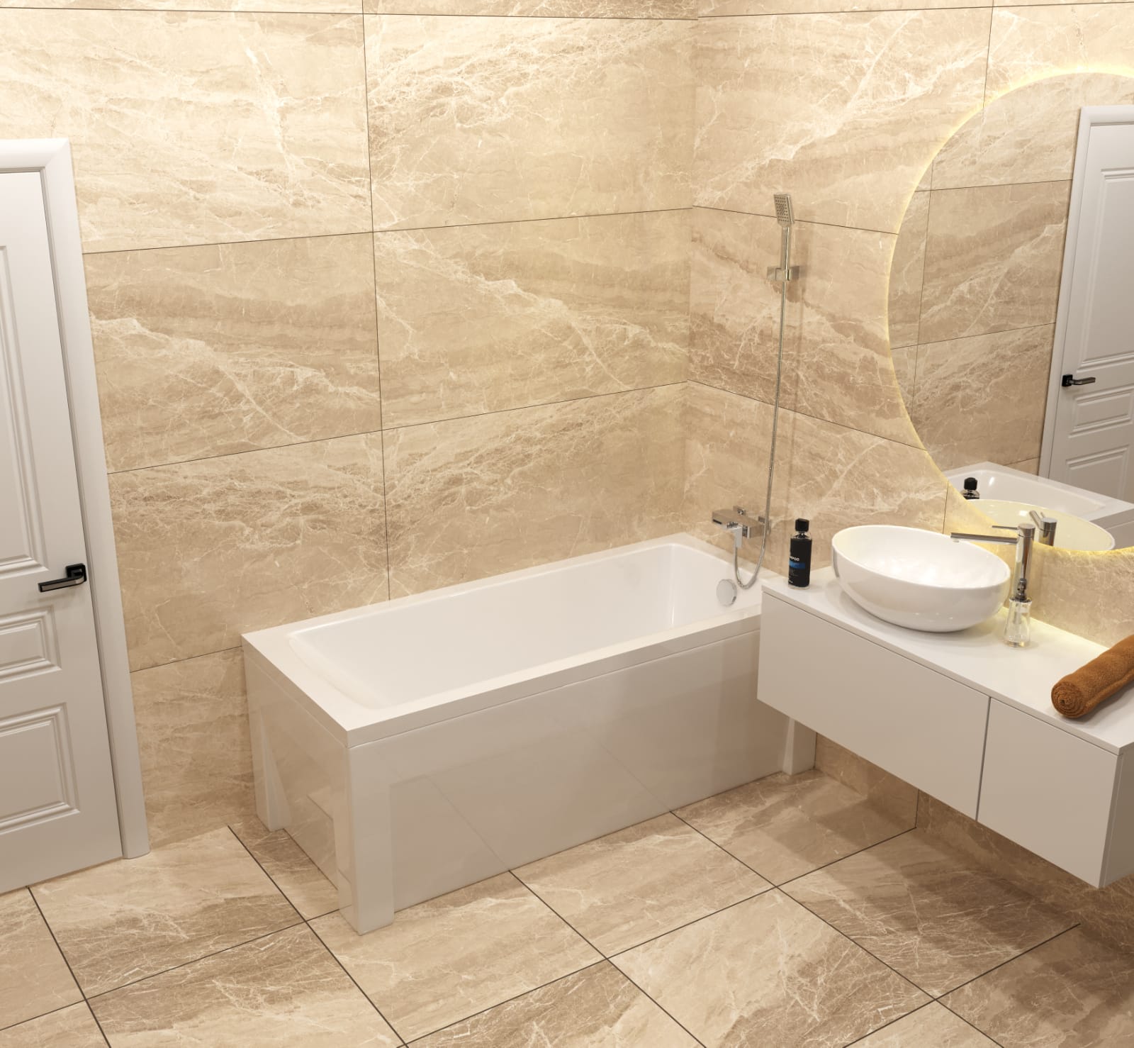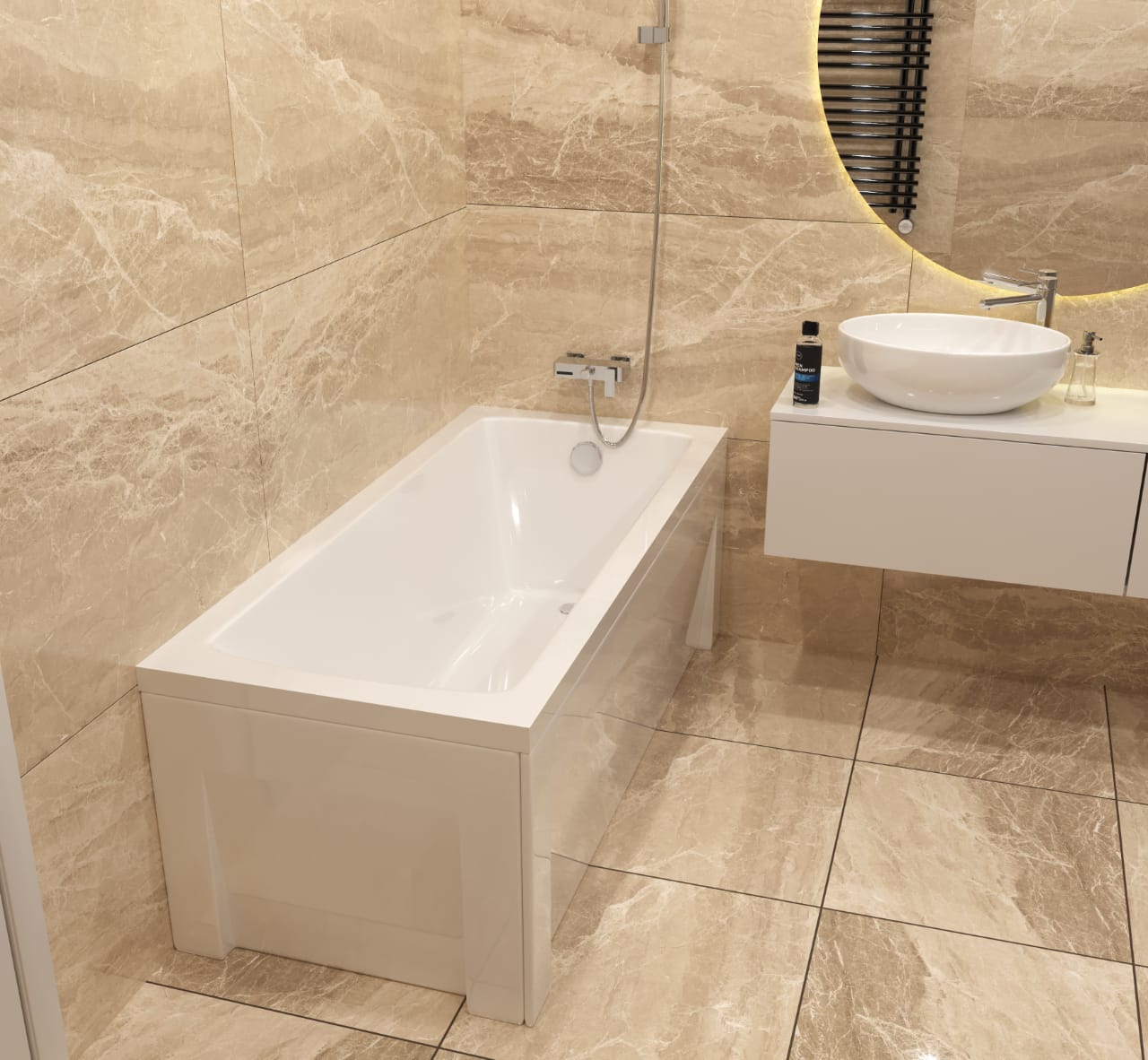 Дно ванны дополнительно усиливается цельной закладной из ДСП 16 мм, что обеспечивает дополнительную устойчивость и долговечность. Эргономика ванны адаптирована под российского потребителя, с увеличенной глубиной и шириной посадочного места для максимального комфорта.