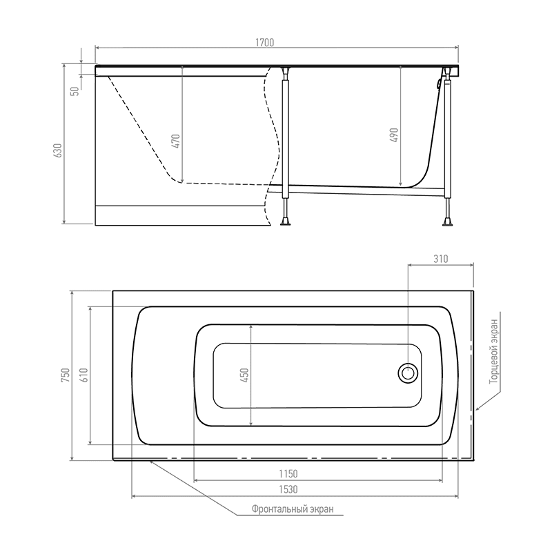 Размеры ванны составляют 1700 мм в длину, 750 мм в ширину и 630 мм в высоту, что делает её подходящей для большинства ванных комнат. Прямоугольная форма обеспечивает удобство использования и легкость в установке. Обратите внимание, что каркас для установки приобретается отдельно.