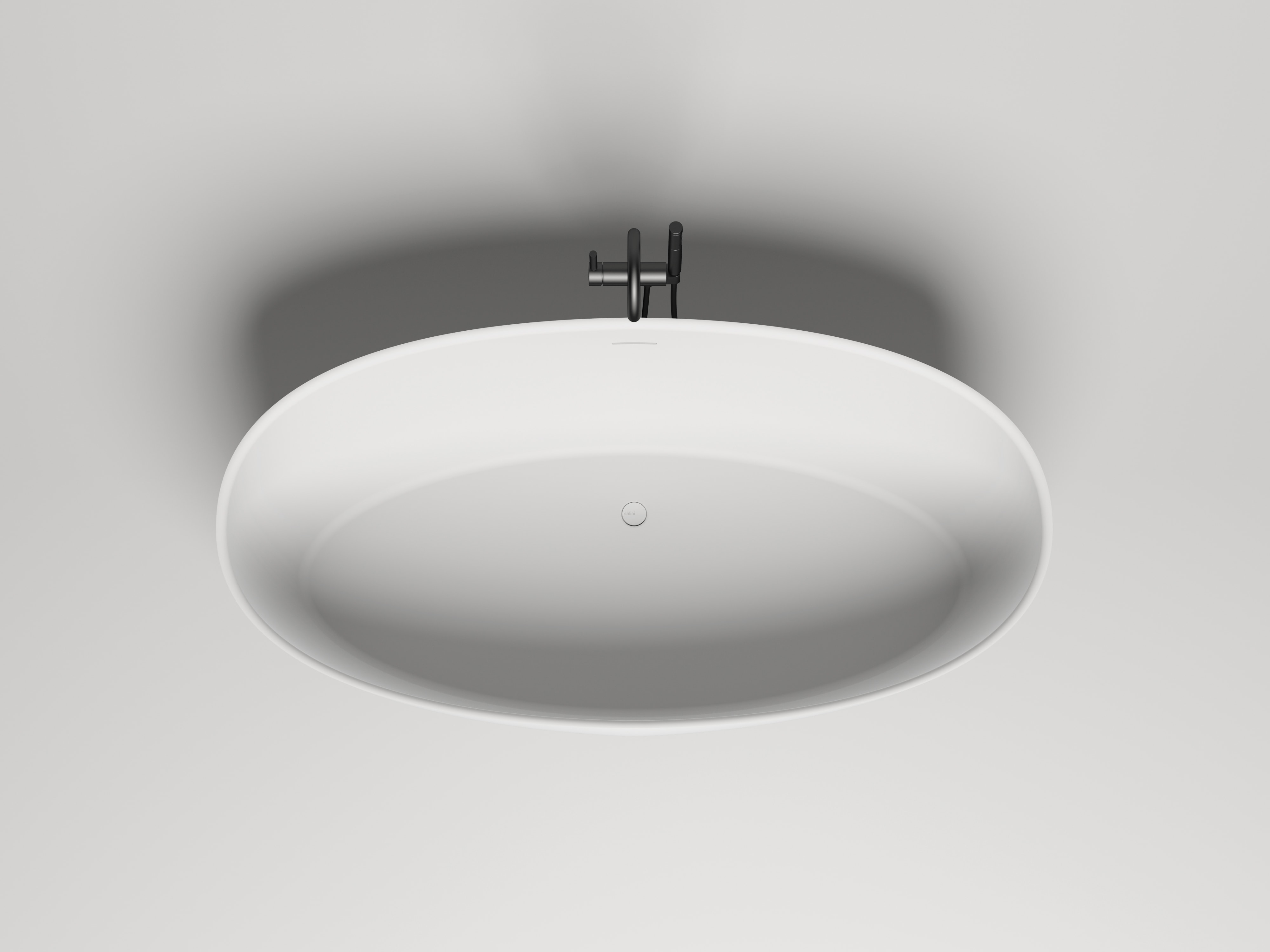 Ванна выполнена из литьевого мрамора, что обеспечивает ей прочность и долговечность. Гладкая глянцевая поверхность не только приятна на ощупь, но и легко очищается, что делает уход за ней простым и удобным. Овальная форма ванны создает атмосферу уюта и расслабления, а классический белый цвет позволяет ей гармонично вписаться в любой стиль оформления.