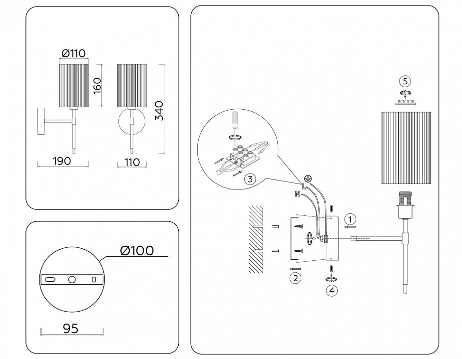 Бра Ambrella Light LH LH72385 имеет степень пылевлагозащиты IP-20, что делает его безопасным для использования в помещениях с нормальными условиями. Обратите внимание, что лампы в комплект не входят, что дает вам возможность выбрать освещение по своему вкусу.