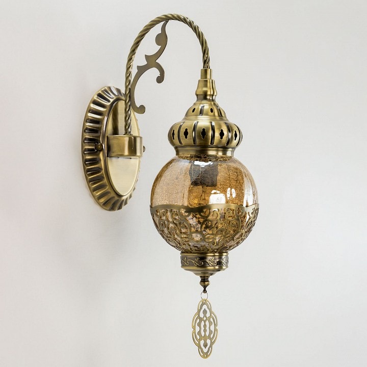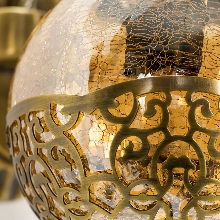 Светильник имеет одну сферическую плафон, направленный вниз, что обеспечивает равномерное и мягкое освещение. Бра не комплектуется лампами, что дает вам возможность выбрать именно тот источник света, который вам нравится. Степень пылевлагозащиты IP20 позволяет использовать его в помещениях с низким уровнем влажности.