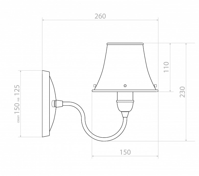 Бра оснащено одним плафоном, который направлен вверх, что позволяет равномерно распределять свет по помещению. Максимальная мощность лампы составляет 25 Вт, а тип цоколя - E14. Обратите внимание, что лампы в комплект не входят, что дает вам возможность выбрать освещение по своему вкусу.