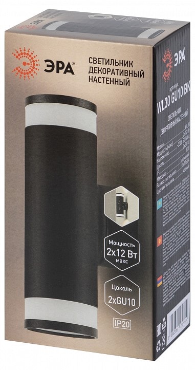 Бра Эра WL30 GU10 BK имеет степень пылевлагозащиты IP20, что делает его идеальным для использования в помещениях с низким уровнем влажности. Его цилиндрическая форма плафонов добавляет изысканности и современности, а черный цвет делает его универсальным элементом, который легко впишется в любой интерьер.