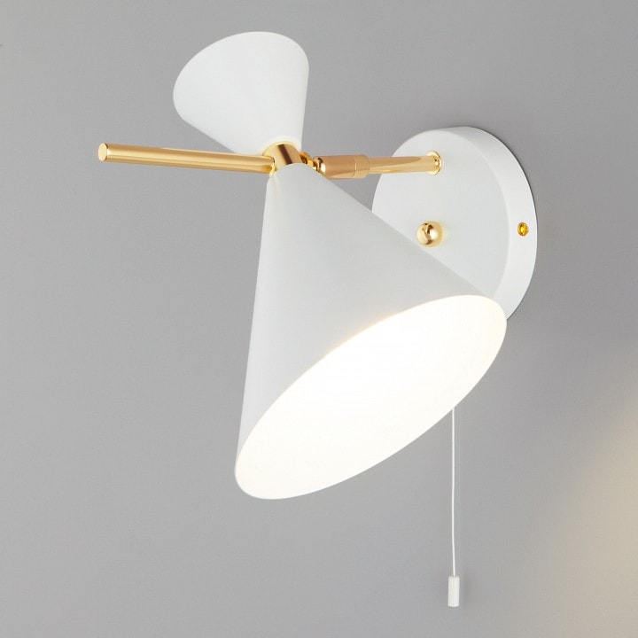 Светильник имеет степень пылевлагозащиты IP 20, что делает его подходящим для использования в помещениях с низким уровнем влажности, таких как гостиные. Бра оснащено выключателем, что обеспечивает удобство в использовании. Направление плафонов можно регулировать, что позволяет создать уникальную атмосферу в вашем интерьере.