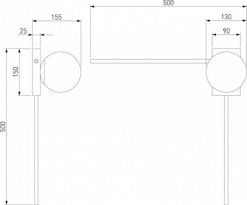 Светильник выполнен в стиле модерн и имеет компактные размеры: высота 500 мм, глубина 500 мм и выступ 500 мм. Благодаря этому, он отлично подойдет для размещения на стене, не занимая много места. Бра оснащено одним плафоном в форме сферы, который направлен вперед, что позволяет равномерно освещать пространство.
