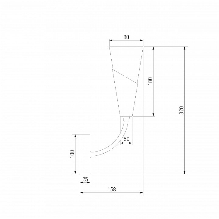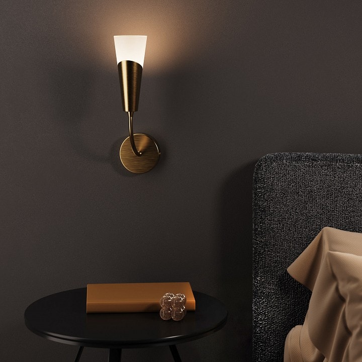 Модель оснащена одним плафоном, который выполнен в форме конуса с усеченной верхней частью. Это не только придает бра оригинальный вид, но и обеспечивает равномерное распределение света. Максимальная мощность лампы составляет 60 Вт, а тип цоколя - E14, что позволяет использовать различные лампы накаливания.