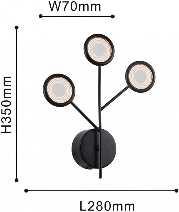 Бра оснащено тремя светодиодными лампами мощностью 3 Вт каждая, что обеспечивает общую мощность в 9 Вт и площадь освещения до 4.5 м². Благодаря направлению плафонов вперед, вы сможете эффективно осветить нужные зоны, создавая комфортное освещение для чтения, отдыха или общения с друзьями.