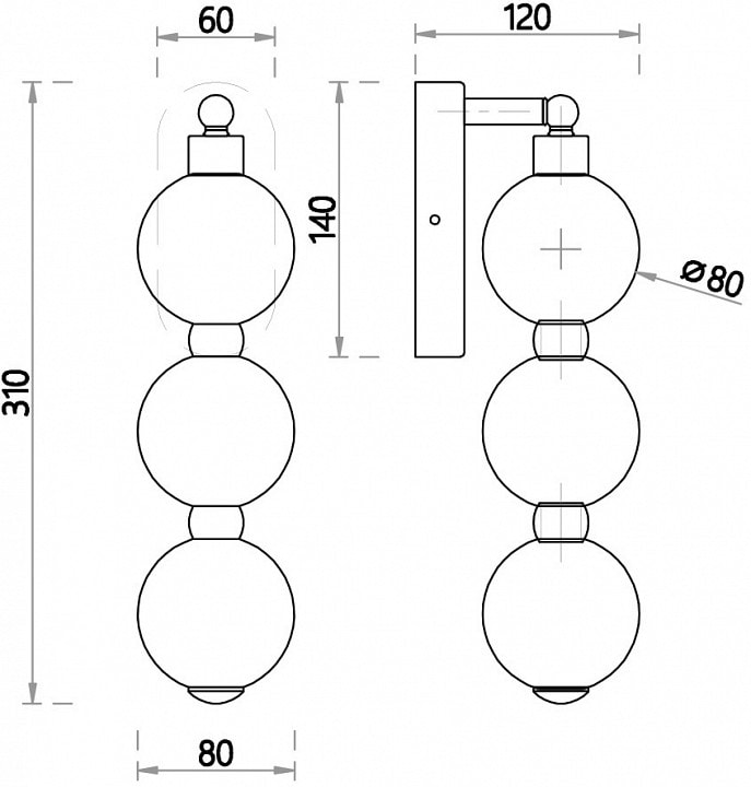 С глубиной 120 мм и высотой 310 мм, бра идеально впишется в любое пространство, создавая уютную атмосферу. Его модерн стиль и сферическая форма плафонов придают изделию элегантный вид, а три светодиодные лампы мощностью 2.33 Вт обеспечивают достаточное освещение для площади до 3.5 м².