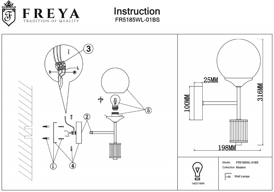 Светильник выполнен в стиле модерн и имеет сферическую форму плафона, что придаёт ему уникальный и привлекательный вид. Бра Freya Bolas отличается компактными размерами: высота составляет 320 мм, глубина и выступ - 316 мм, что позволяет легко разместить его в любом интерьере. При этом, несмотря на свои небольшие размеры, оно способно создать яркое и комфортное освещение.
