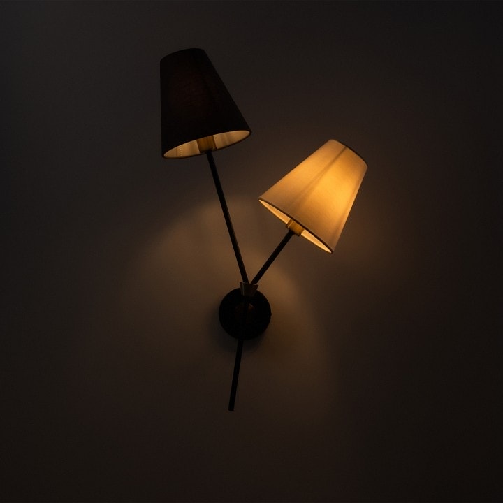 Светильник выполнен в современном стиле и обладает уникальным дизайном, который гармонично впишется в любой интерьер. Бра имеет два плафона, которые можно направить вверх или вниз, создавая мягкое и приятное освещение. Максимальная мощность лампы составляет 40 Вт, а тип цоколя — E14, что позволяет использовать различные лампы накаливания.