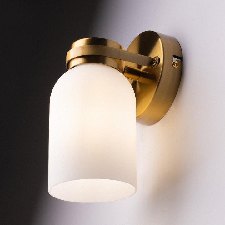 Светильник выполнен в современном стиле и отлично впишется в интерьер гостиной, добавляя нотку элегантности. Его размеры (высота 190 мм, глубина 120 мм, выступ 120 мм) делают его компактным и удобным для размещения на стене. Бра оснащено одним плафоном, который направлен вниз, создавая мягкое и приятное освещение.