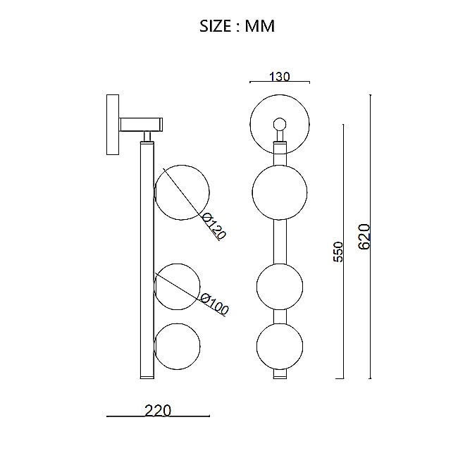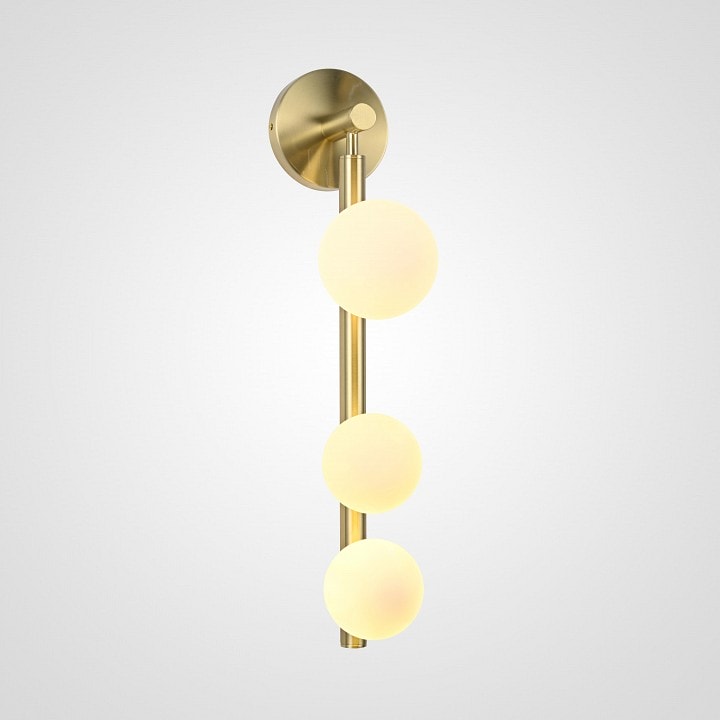 Бра выполнено в элегантном золотом цвете и относится к серии DOLL Gold. Его размеры (высота 550 мм, глубина 220 мм, выступ 220 мм) делают его универсальным для размещения в различных помещениях, включая гостиную, спальню или коридор. Бра имеет три плафона, которые направлены вперед, обеспечивая равномерное и мягкое освещение.
