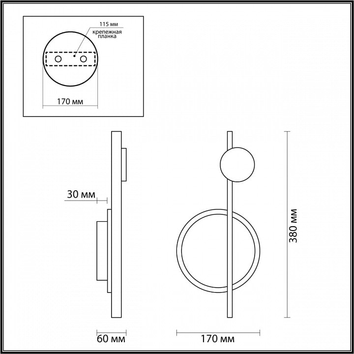 Бра оснащено одним светодиодным плафоном, который обеспечивает максимальную мощность в 17 Вт и освещает площадь до 8.5 м². Благодаря направлению плафона вперед, вы сможете создать яркое и равномерное освещение в вашем помещении.